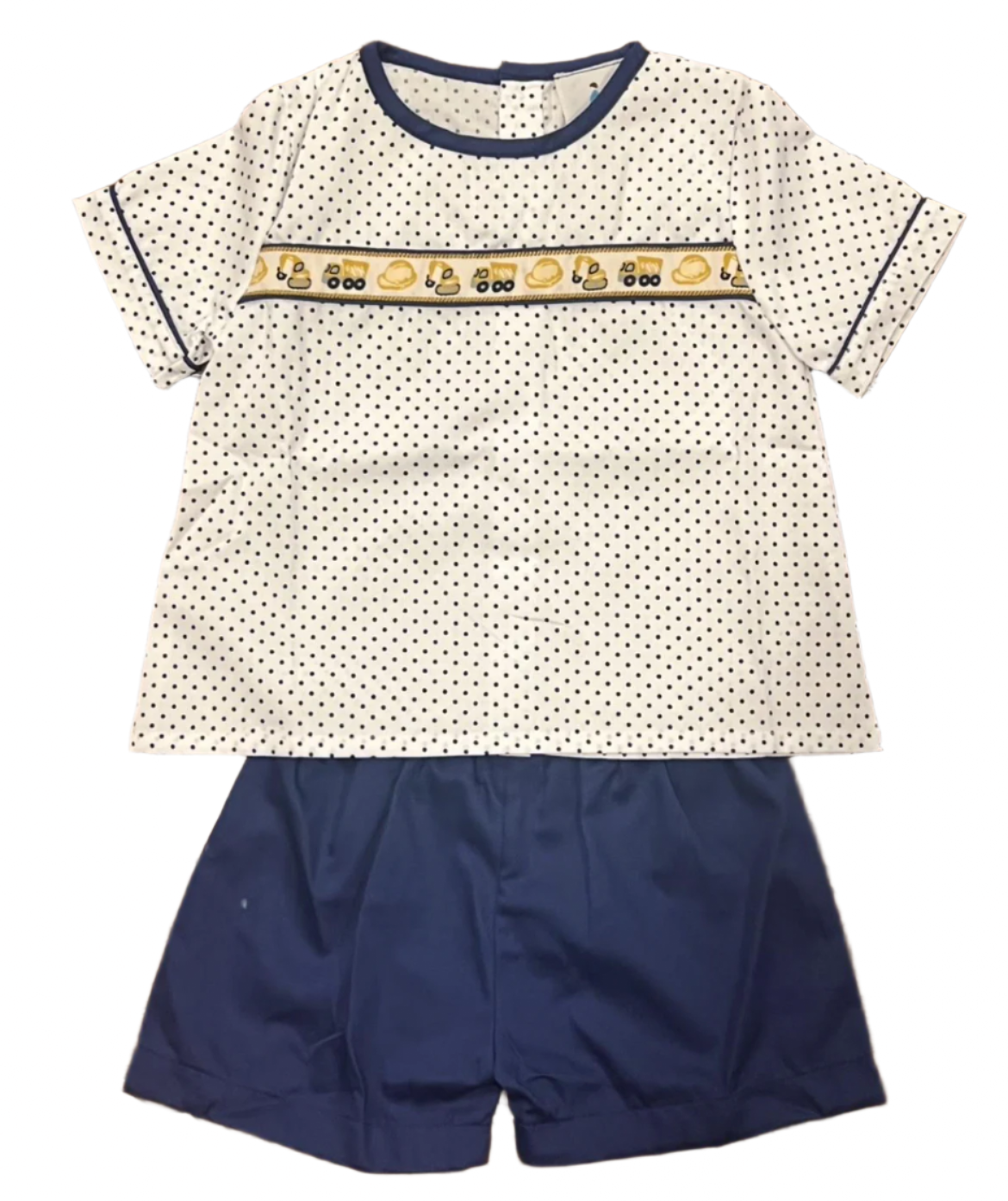 Construction Ribbon Short Set made of woven material and a woven ribbon.